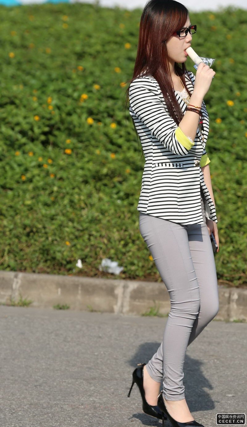 街拍戴眼鏡的緊身褲文靜美眉
