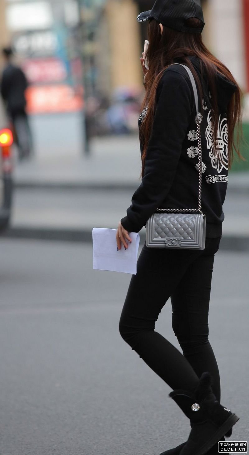 街拍的黑色緊身褲長(cháng)細腿美眉