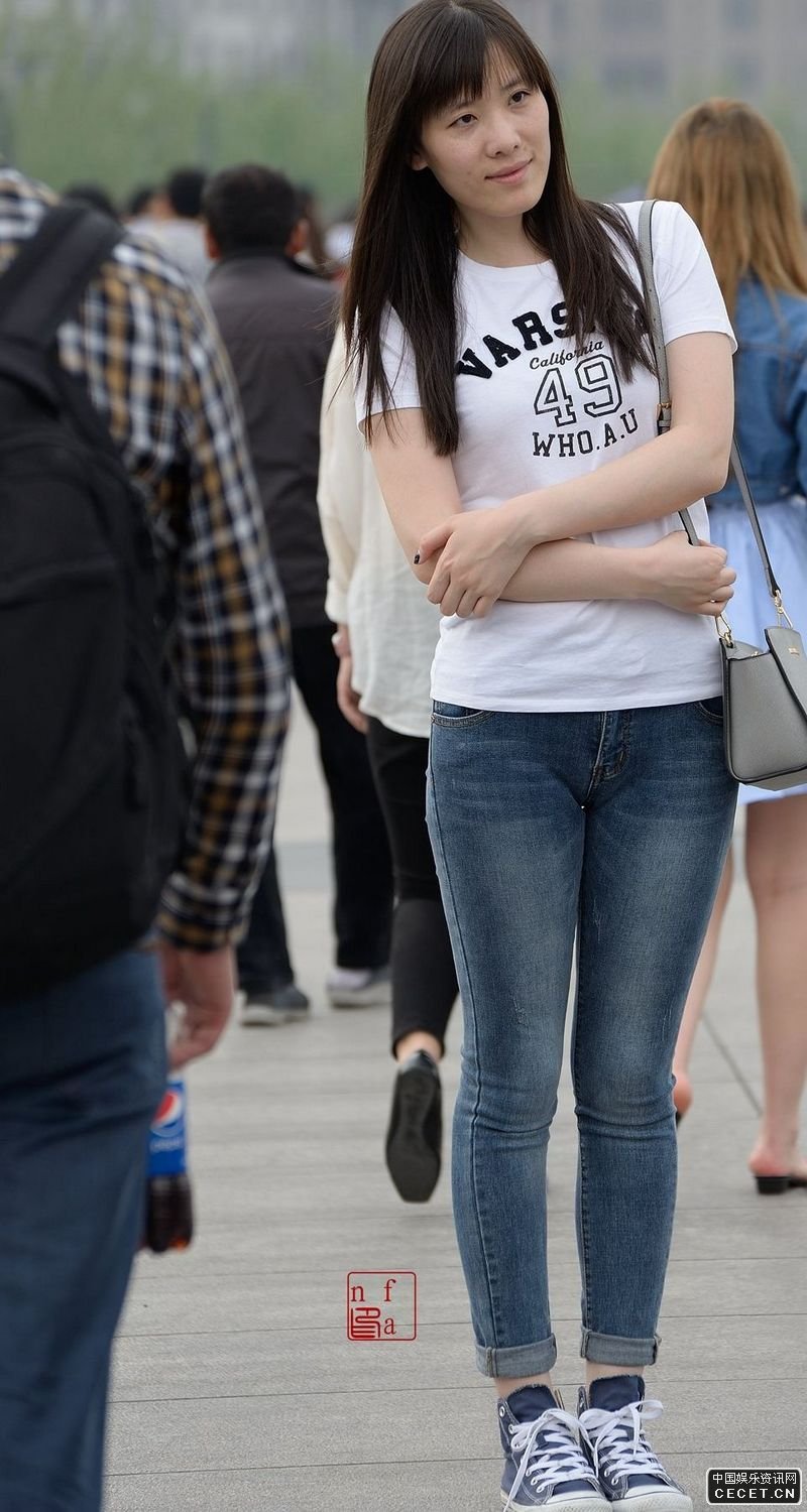 旅游景點(diǎn)抓拍的緊身牛仔褲美女