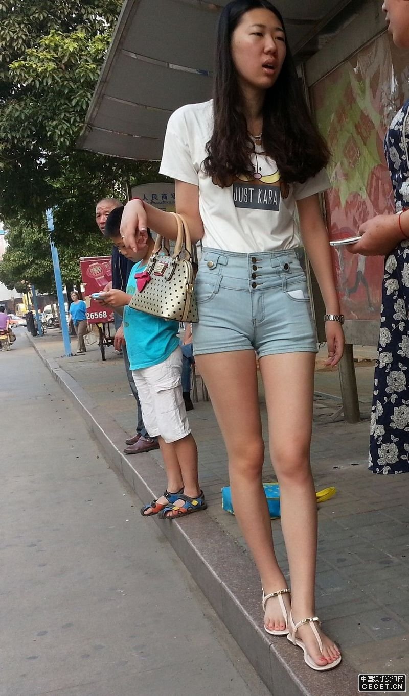 公交車(chē)站抓拍的熱褲長(cháng)腿美眉