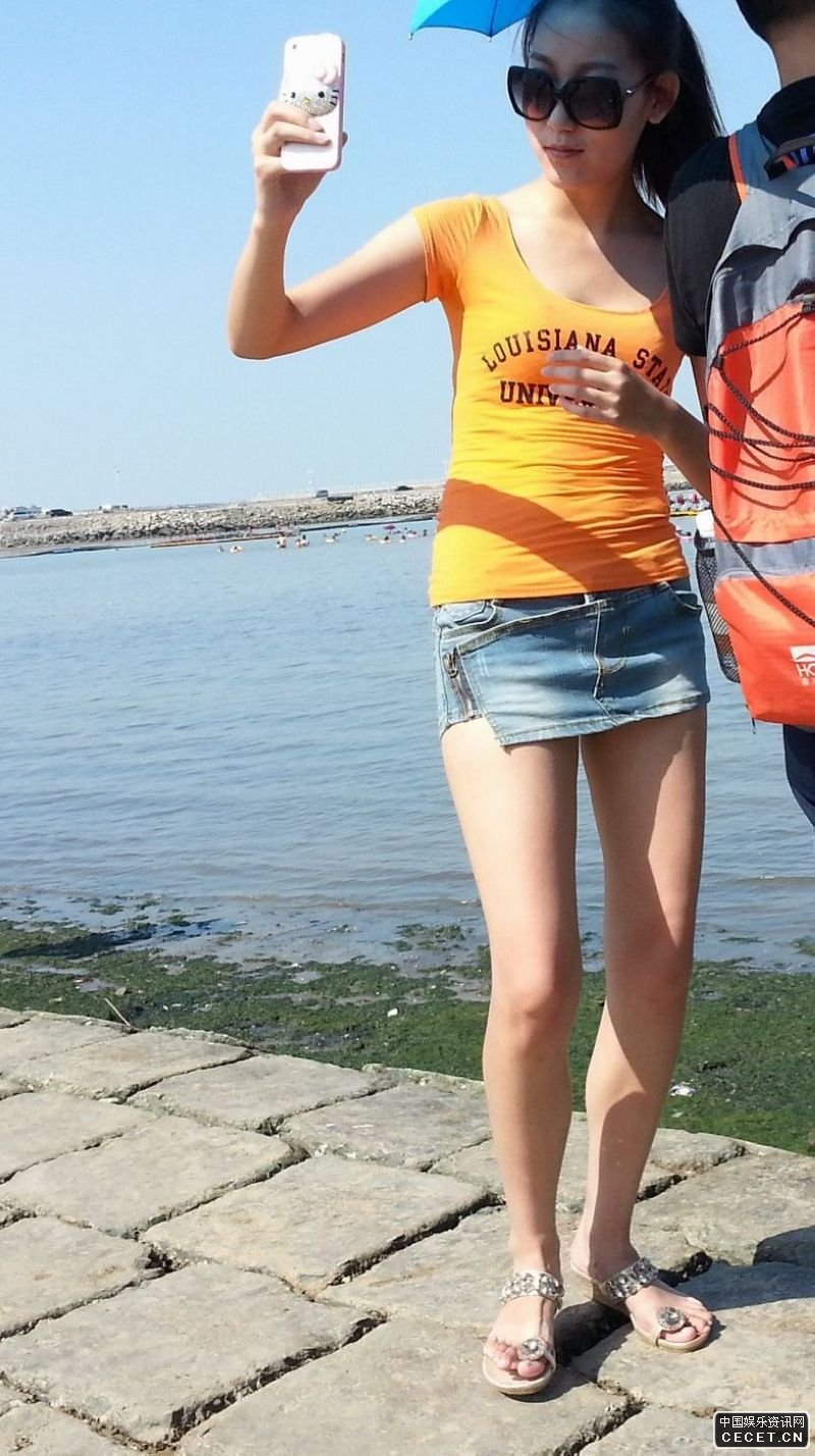 公園湖邊抓拍的牛仔熱褲美女