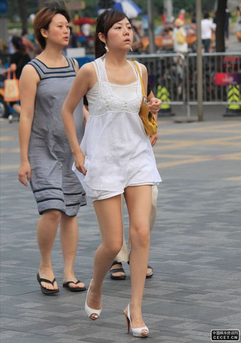 文藝路街拍的白色褲裙美女