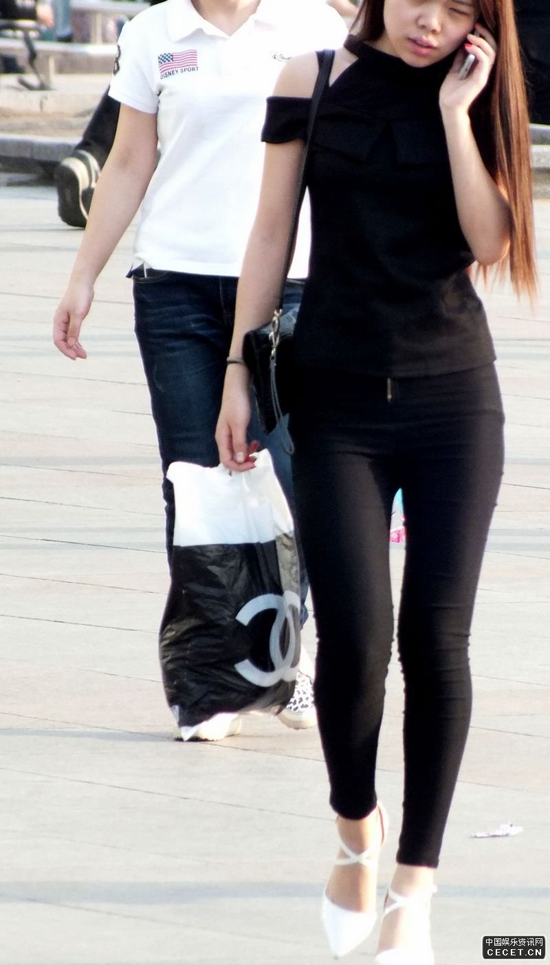 街拍的黑色緊身褲長(cháng)發(fā)美女