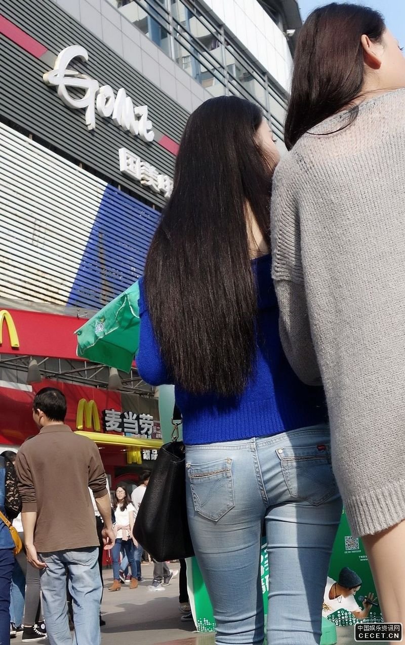 街拍的緊身牛仔褲長(cháng)發(fā)美女