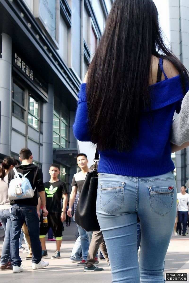 街拍的緊身牛仔褲長(cháng)發(fā)美女