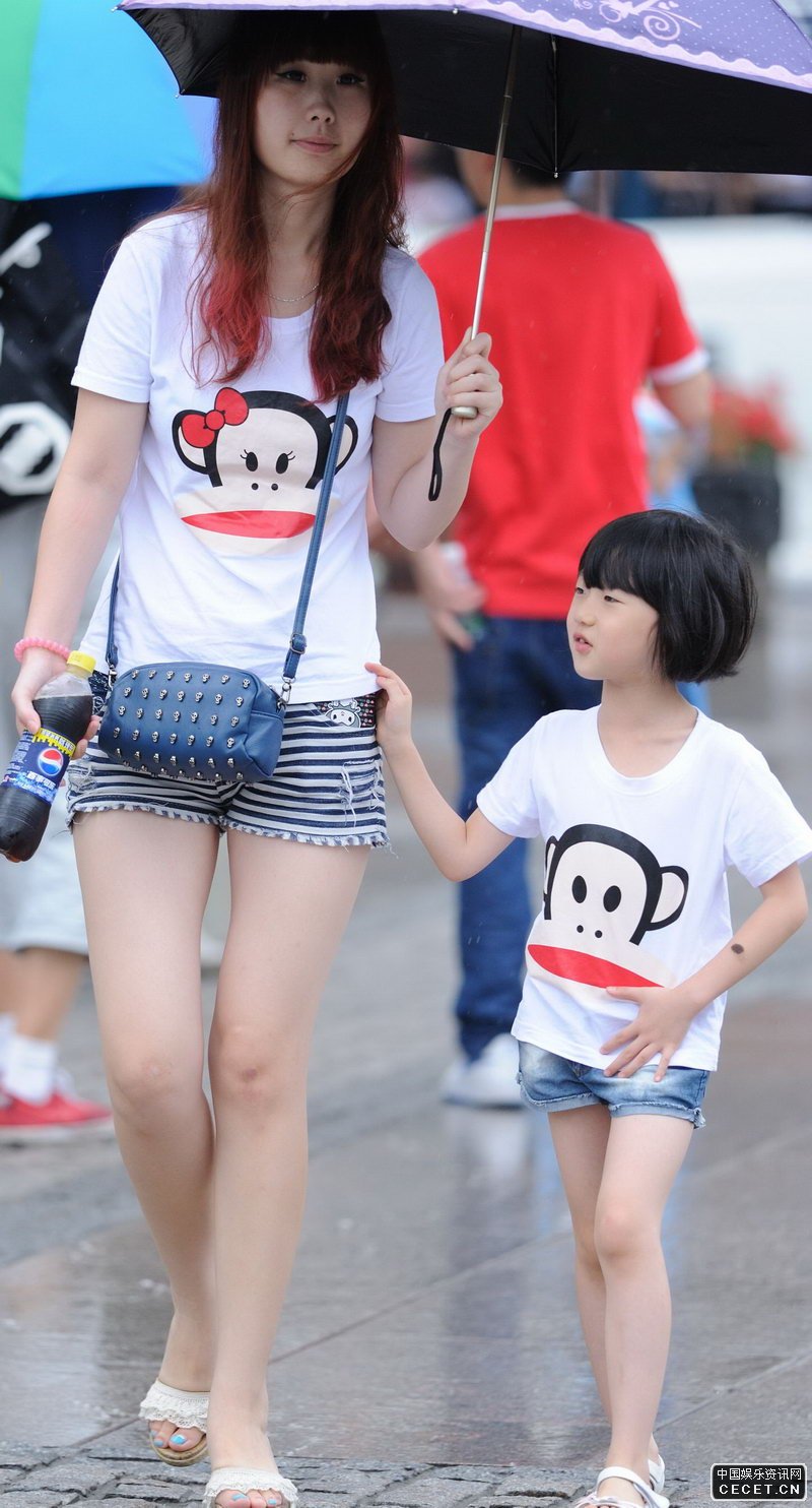 街拍的緊身熱褲年輕媽媽