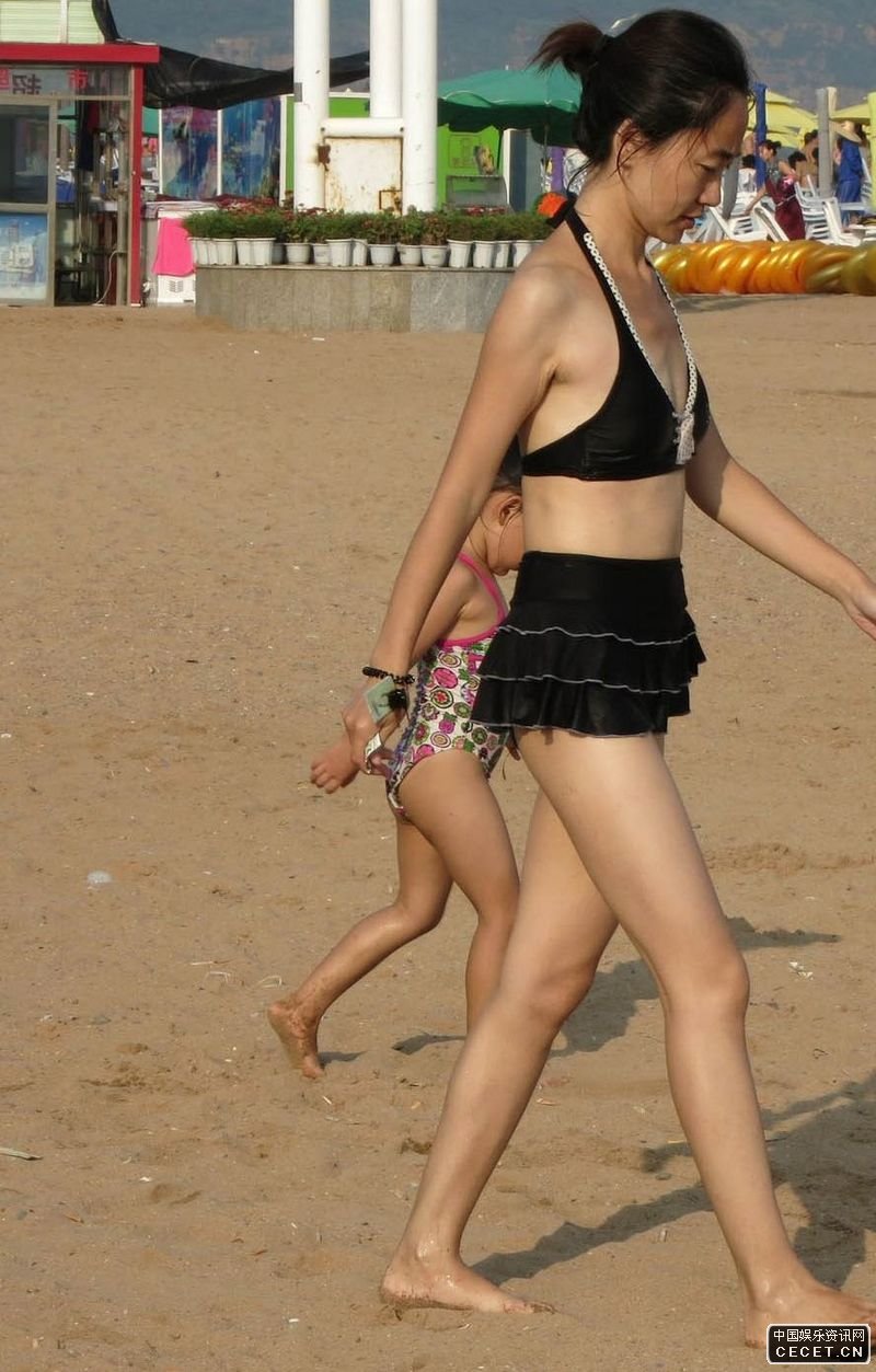 沙灘抓拍的黑色比基尼美女