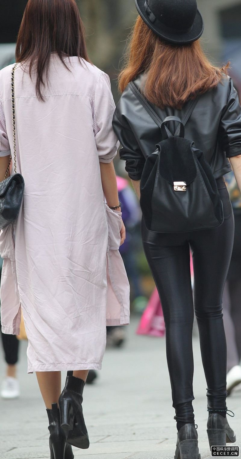 街拍的緊身皮褲時(shí)尚美眉