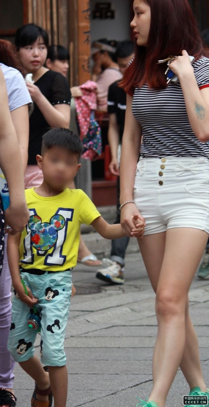 街拍的白色緊身熱褲美少婦