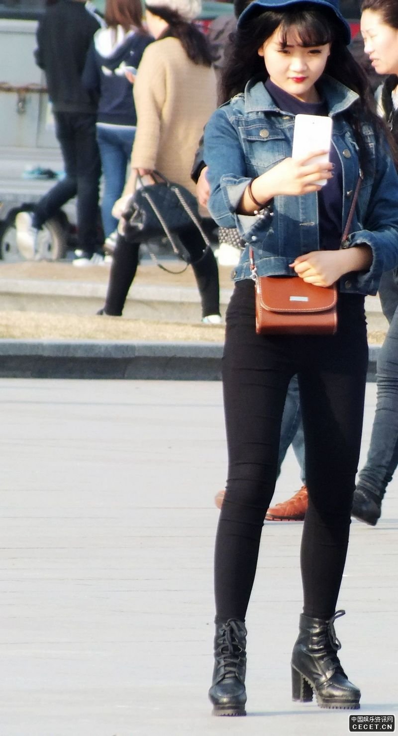 街拍的緊身黑褲苗條身材美眉