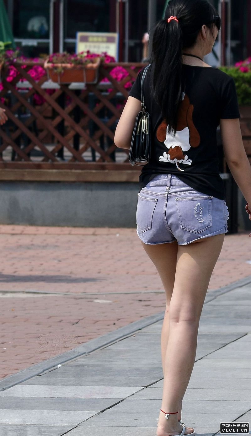 廣場(chǎng)街拍的牛仔短褲墨鏡美眉