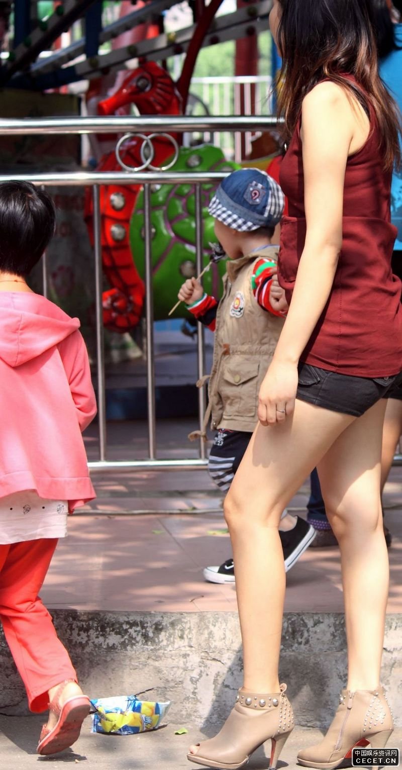兒童樂(lè )園抓拍的黑熱褲裸腿辣媽