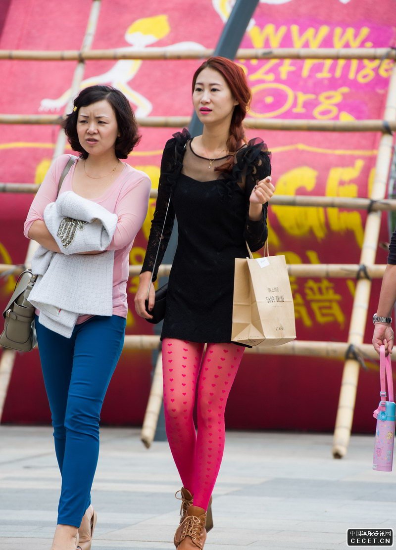 商業(yè)街區抓拍的紅色絲襪姐姐