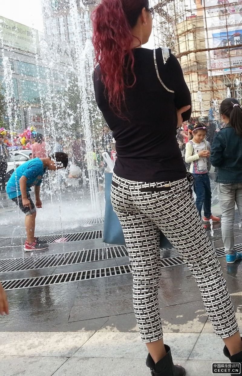 街拍的格子緊身長(cháng)褲墨鏡美女