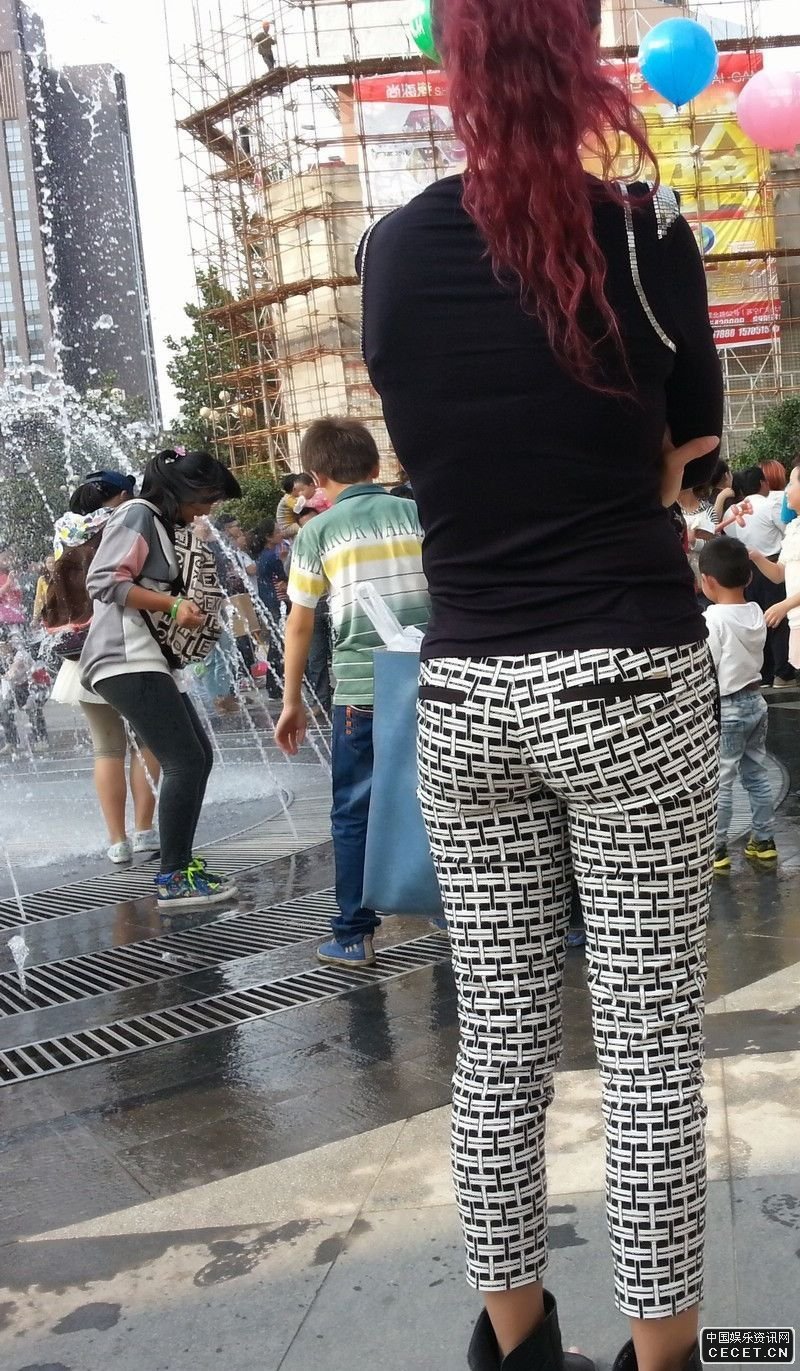街拍的格子緊身長(cháng)褲墨鏡美女