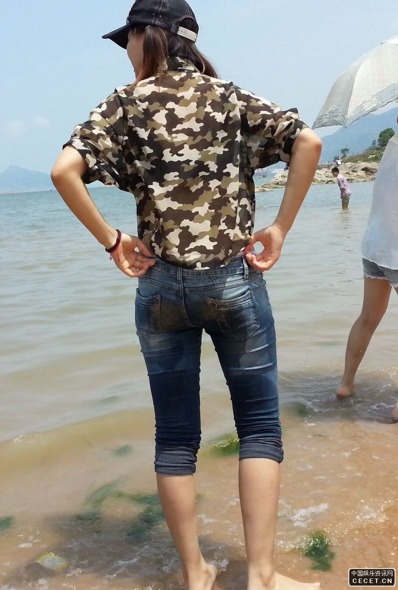 海邊沙灘抓拍的緊身牛仔褲美女