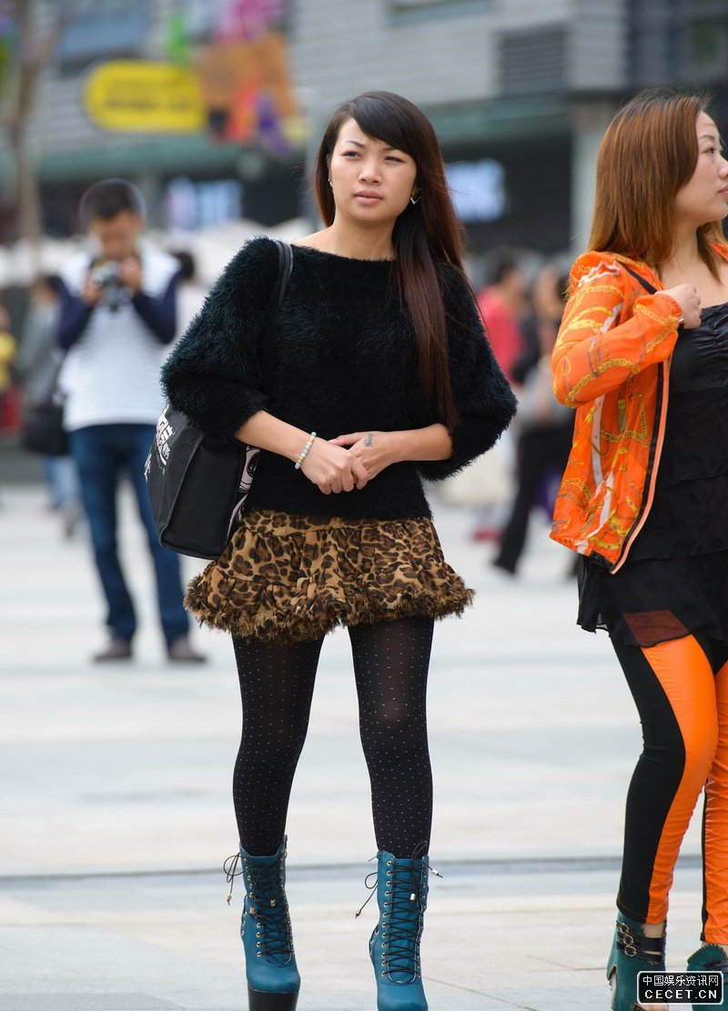 街拍的豹紋短裙黑絲襪美眉