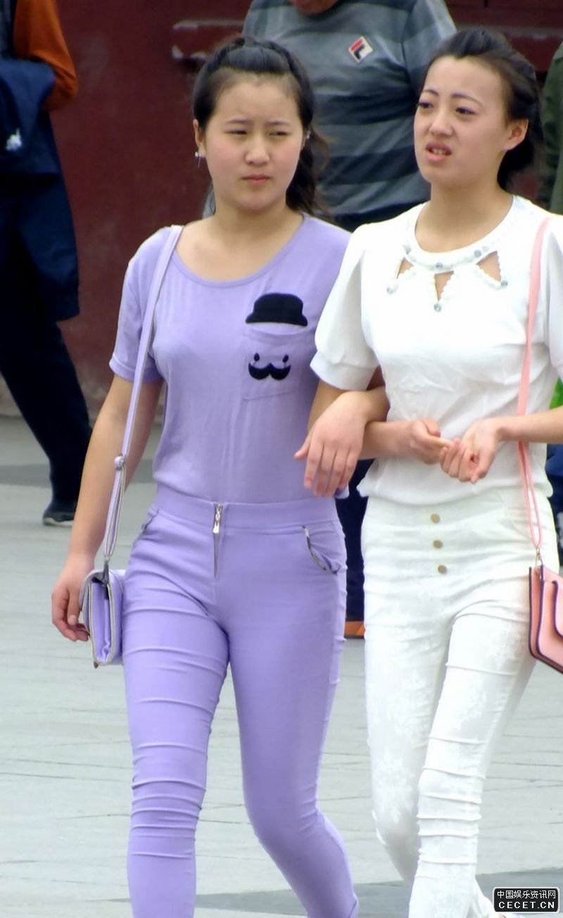 廣場(chǎng)街拍的緊身長(cháng)褲母女倆