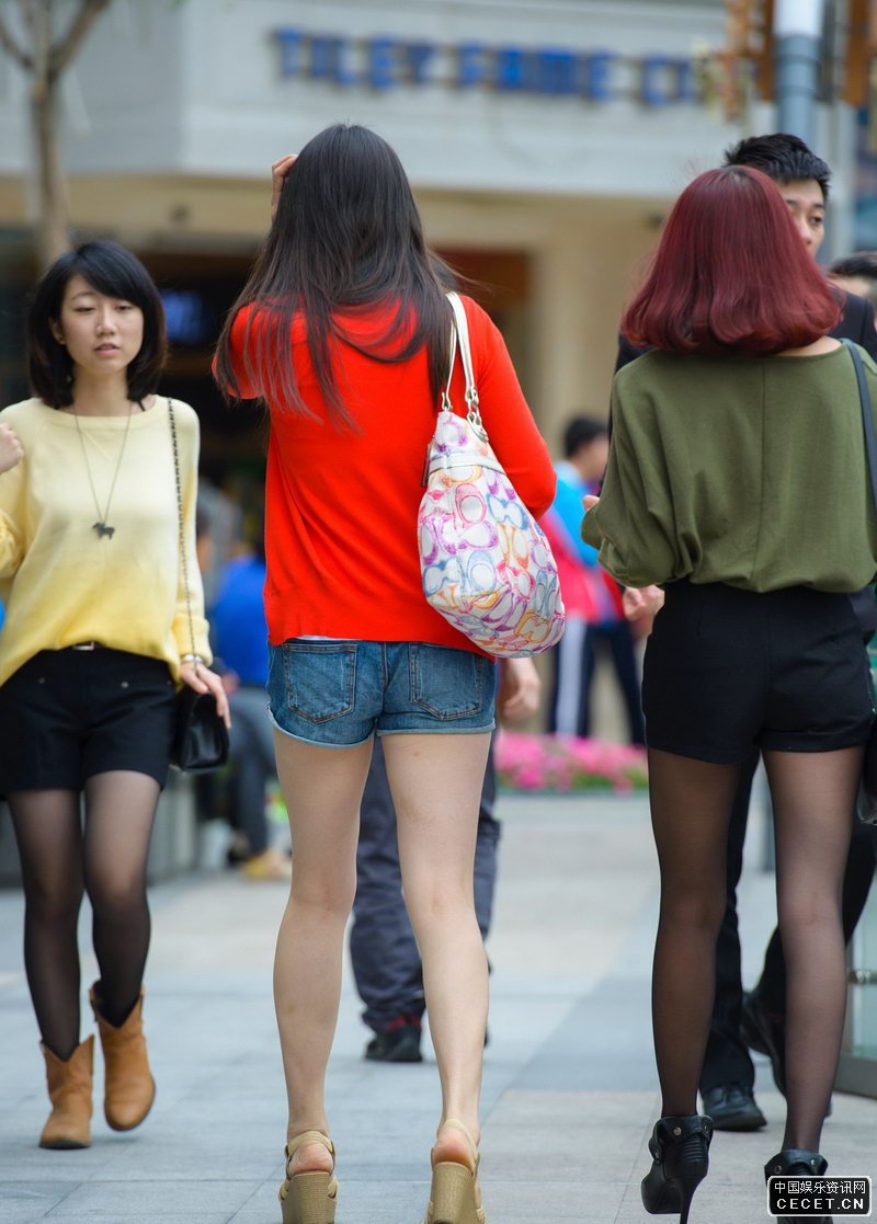 街拍的兩個(gè)長(cháng)細美腿時(shí)尚妹子