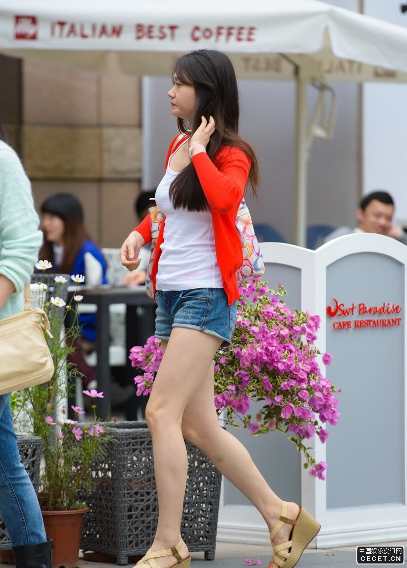 商業(yè)中心抓拍的牛仔短褲美女