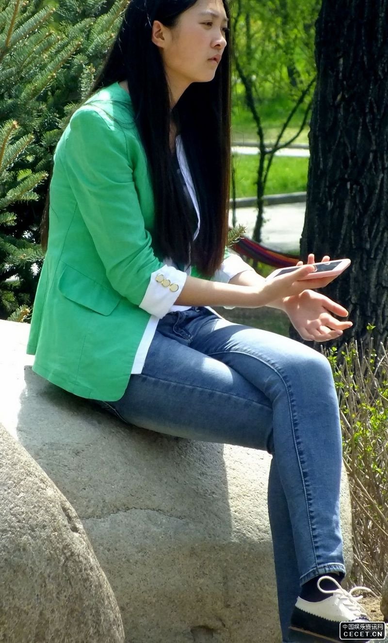 青山公園抓拍的牛仔褲美眉