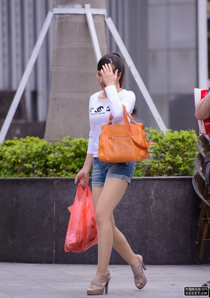 商業(yè)區抓拍的牛仔短褲姐姐