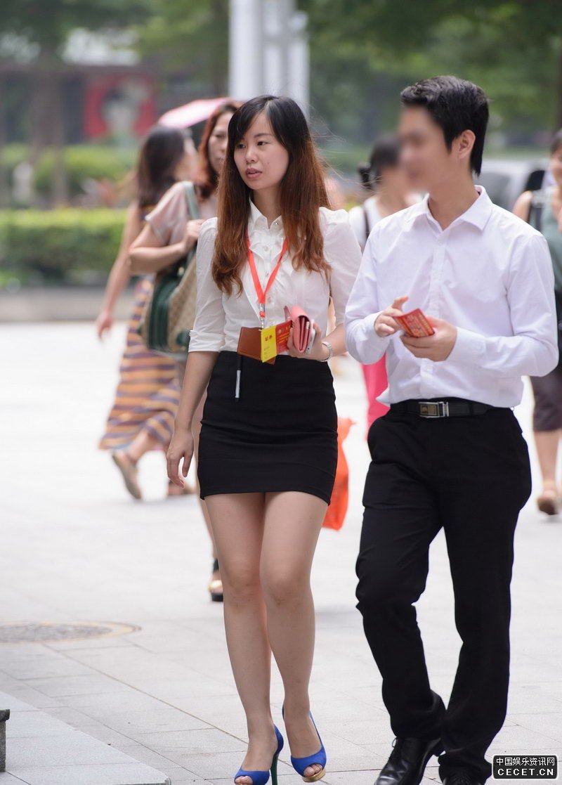 公交車(chē)站抓拍的職業(yè)裝女文員