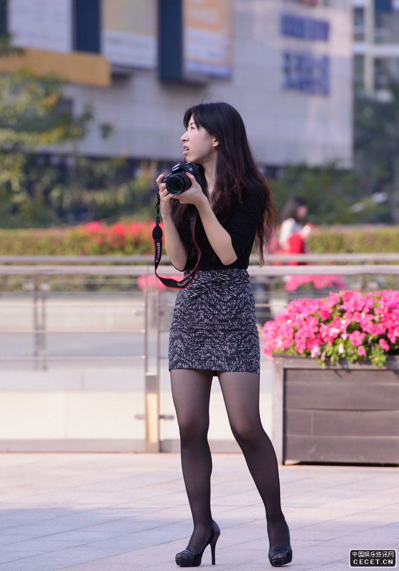 廣場(chǎng)街拍緊身短裙黑絲襪美女