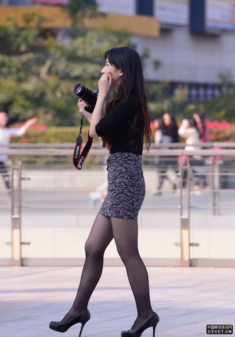廣場(chǎng)街拍緊身短裙黑絲襪美女