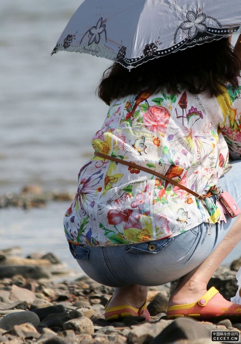 旅游景區抓拍的牛仔褲墨鏡美女