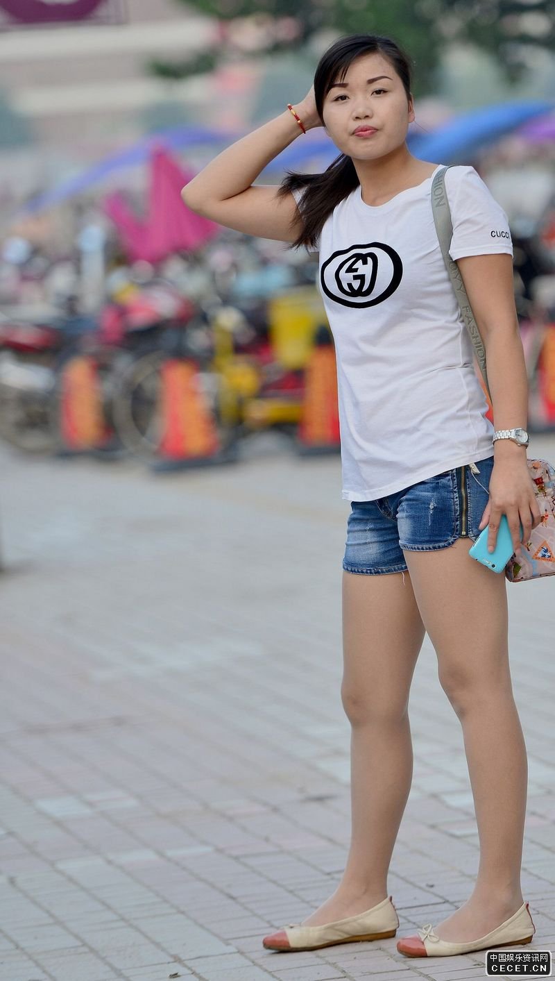 批發(fā)市場(chǎng)街拍的牛仔短褲美女