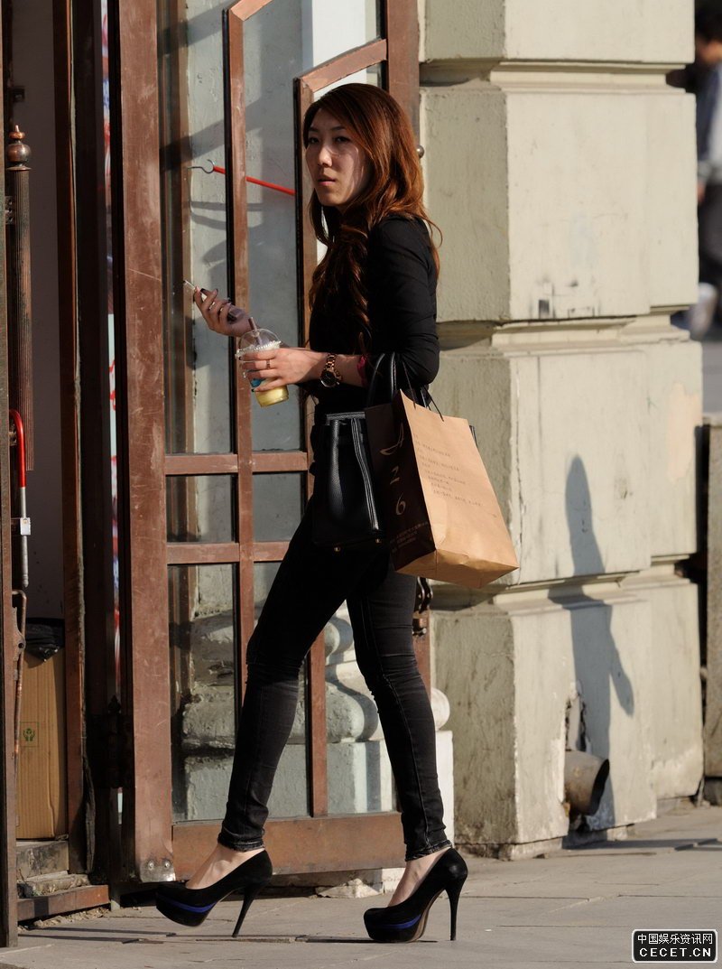 廣場(chǎng)街拍的高挑身材牛仔褲美女