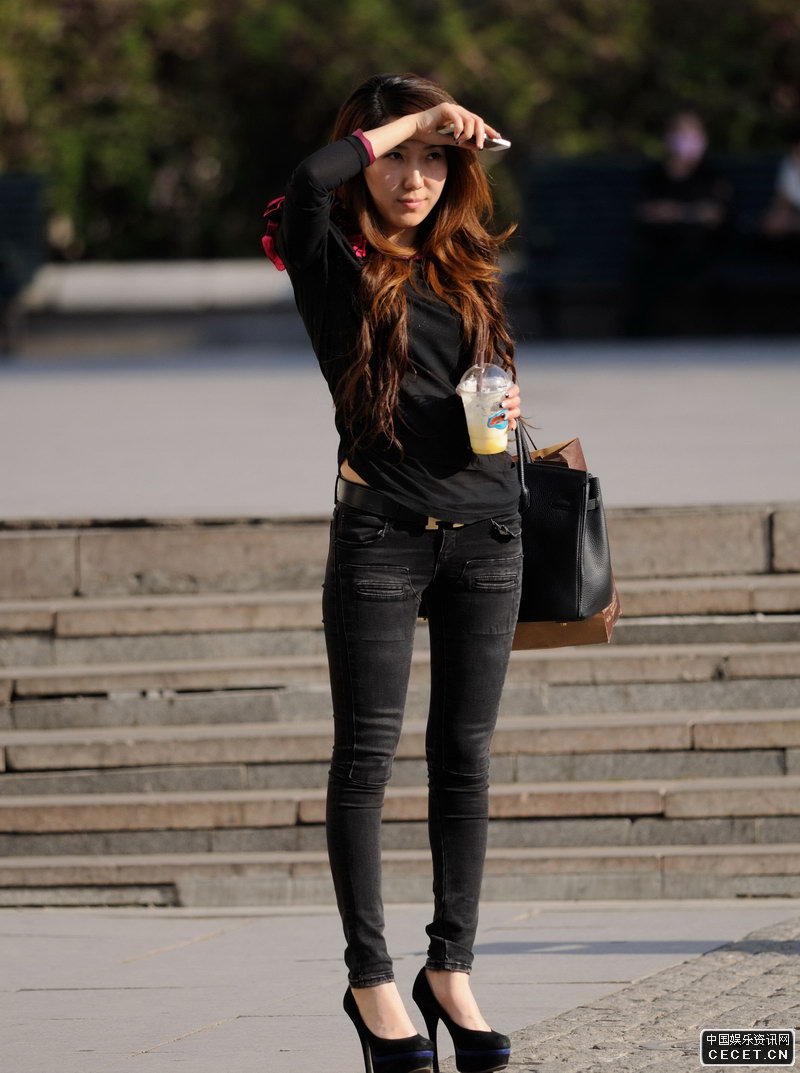 廣場(chǎng)街拍的高挑身材牛仔褲美女