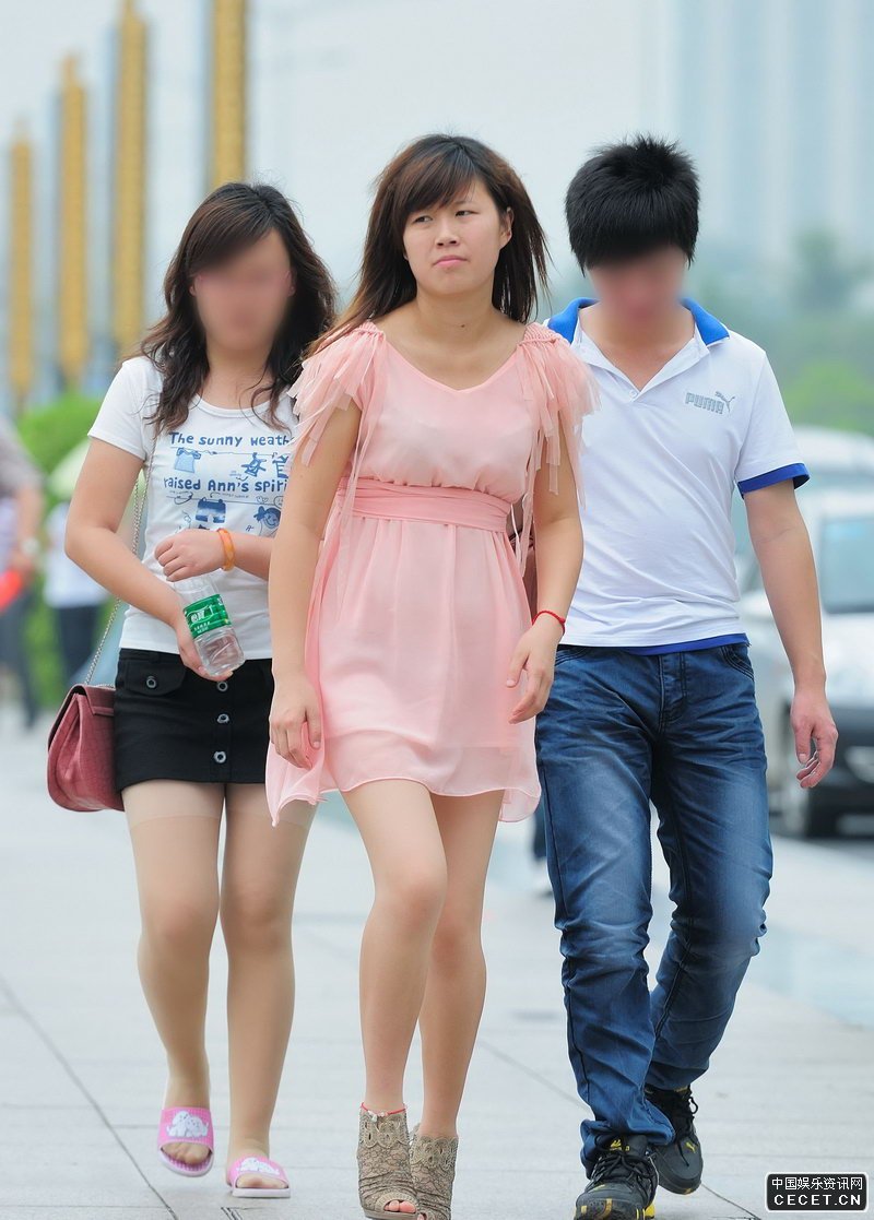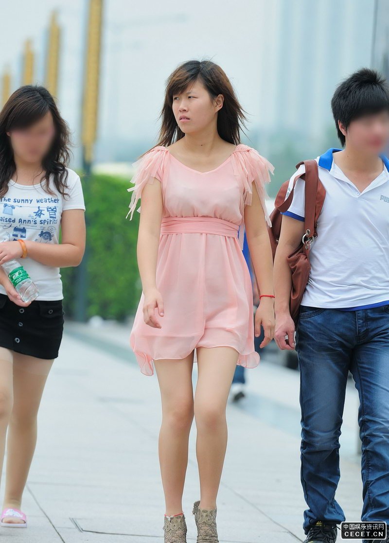 街拍的粉色連衣紗裙美眉