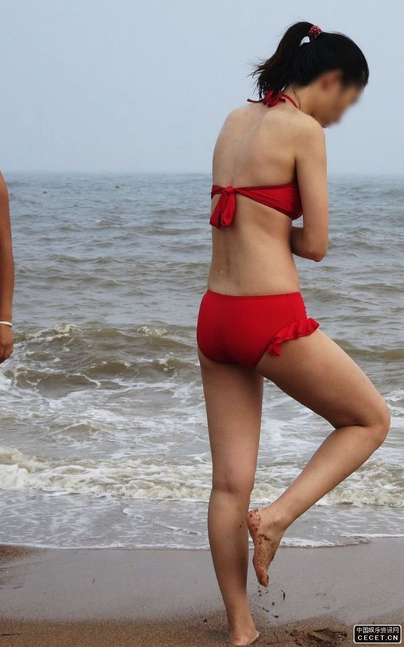 廈門(mén)海邊抓拍的紅色泳裝美女
