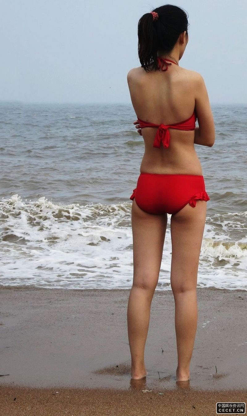 廈門(mén)海邊抓拍的紅色泳裝美女