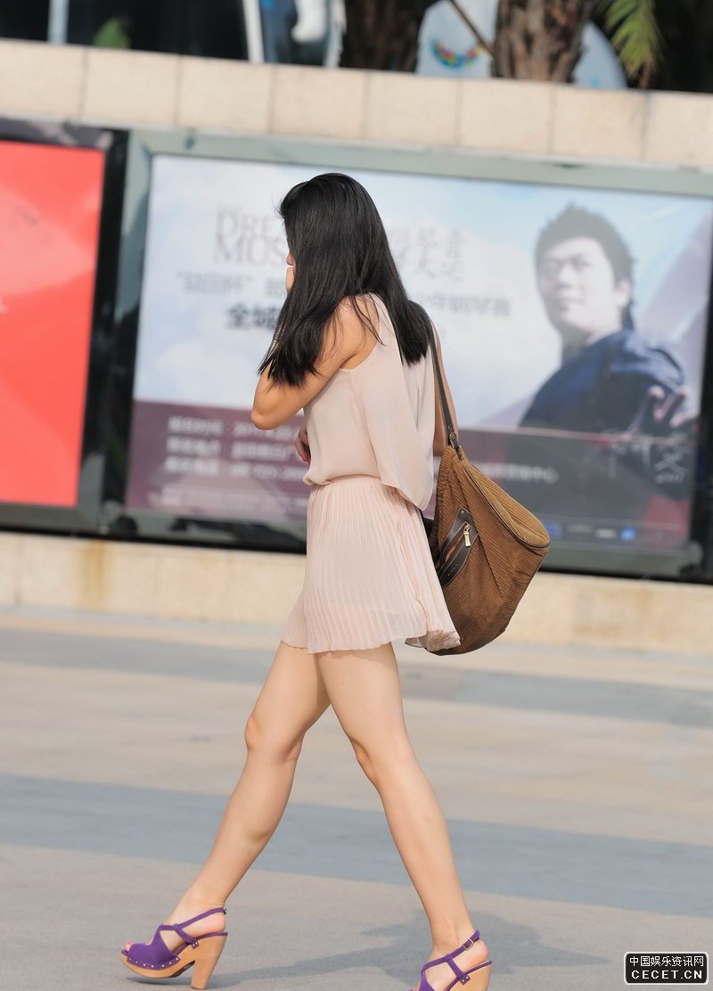 街拍的淡粉連衣透紗短裙美女