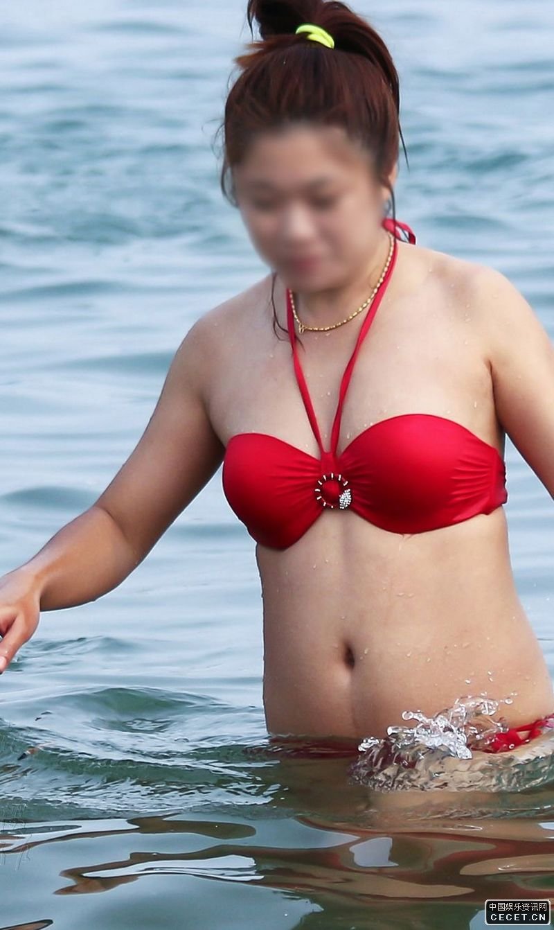 海邊抓拍豐滿(mǎn)的紅色泳裝美女