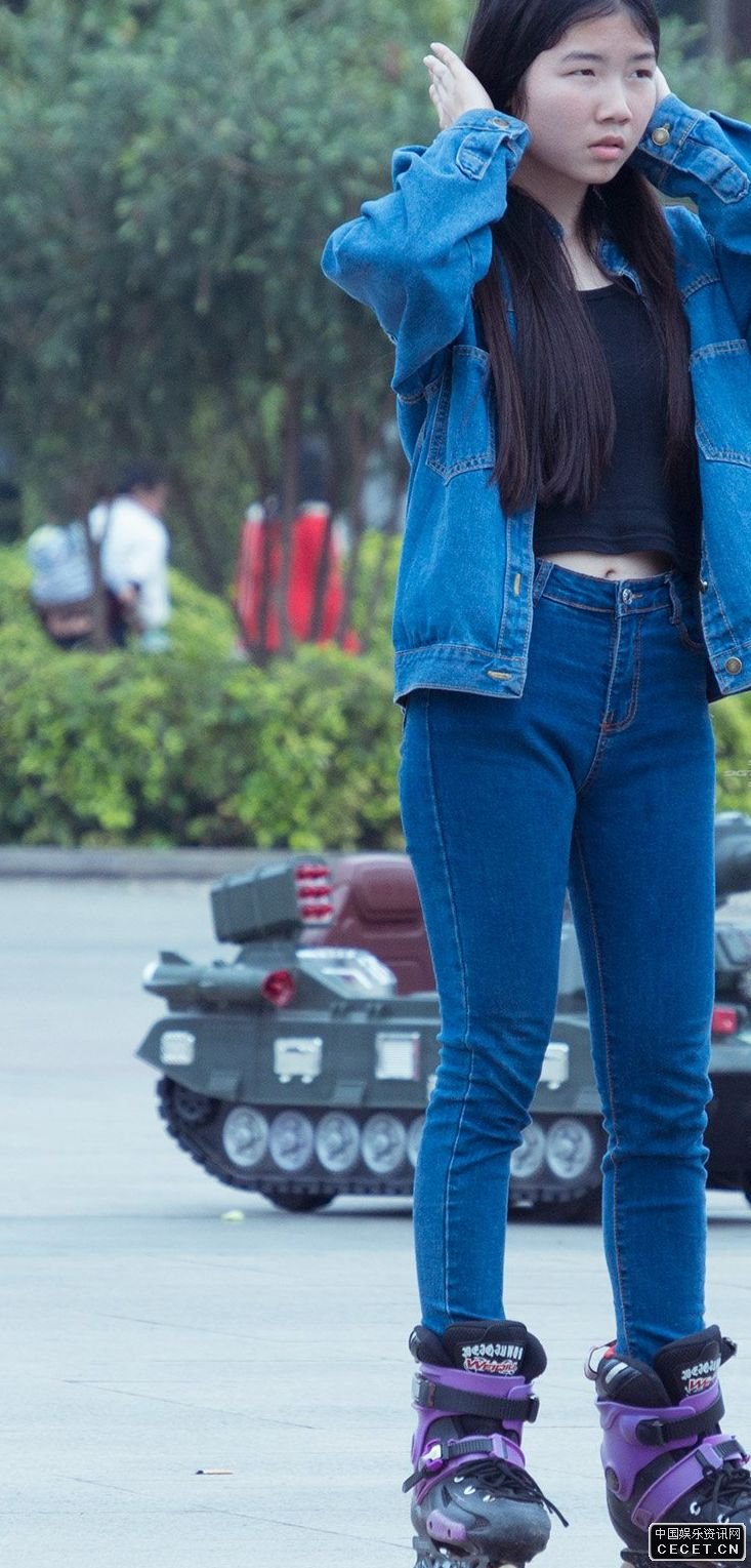 廣場(chǎng)抓拍滑旱冰的牛仔褲美眉