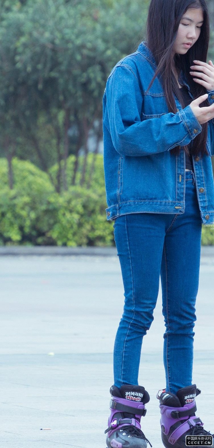 廣場(chǎng)抓拍滑旱冰的牛仔褲美眉