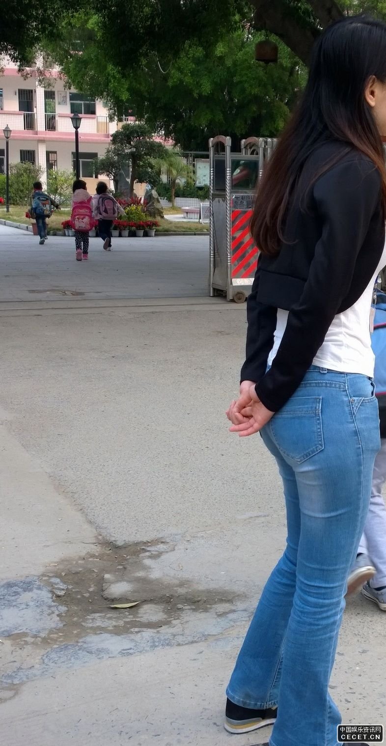 中學(xué)門(mén)口抓拍的牛仔褲女教師