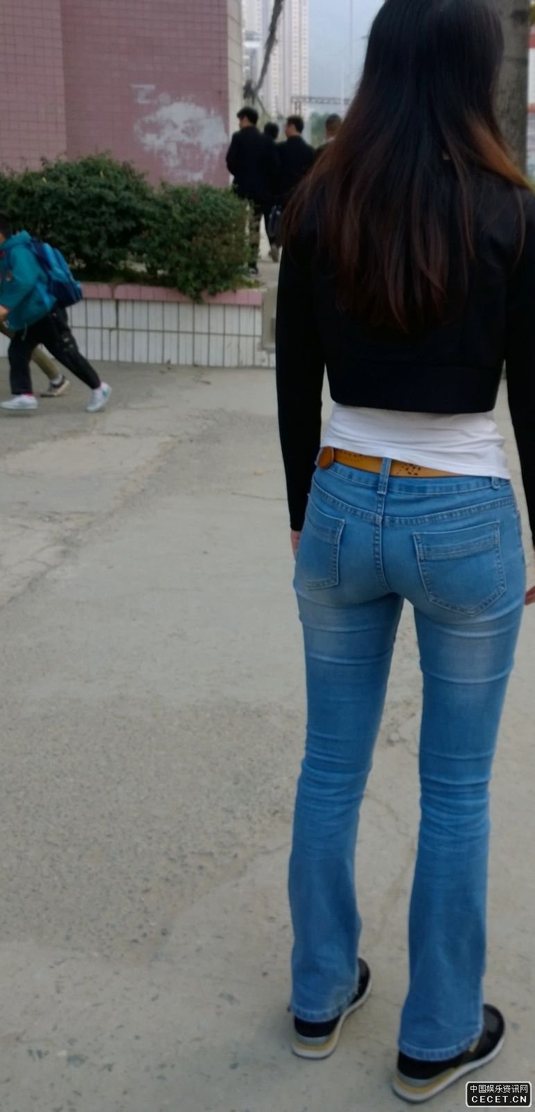 中學(xué)門(mén)口抓拍的牛仔褲女教師