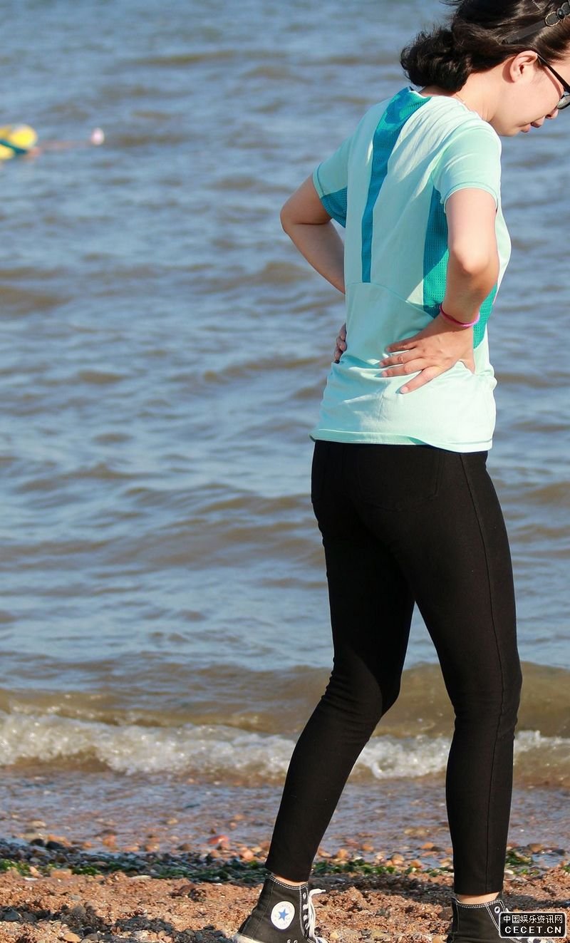 沙灘抓拍的黑色緊身褲美女