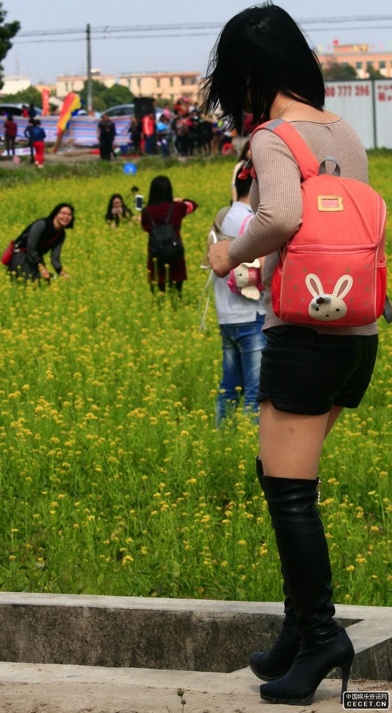 旅游景區抓拍的短褲長(cháng)靴少婦