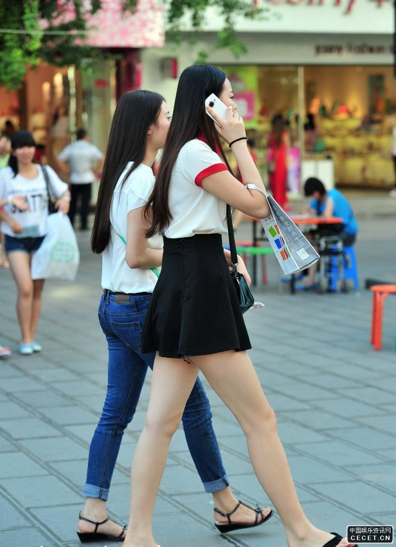 長(cháng)白街抓拍的短裙長(cháng)細腿美眉