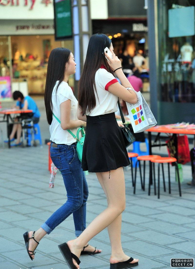 長(cháng)白街抓拍的短裙長(cháng)細腿美眉