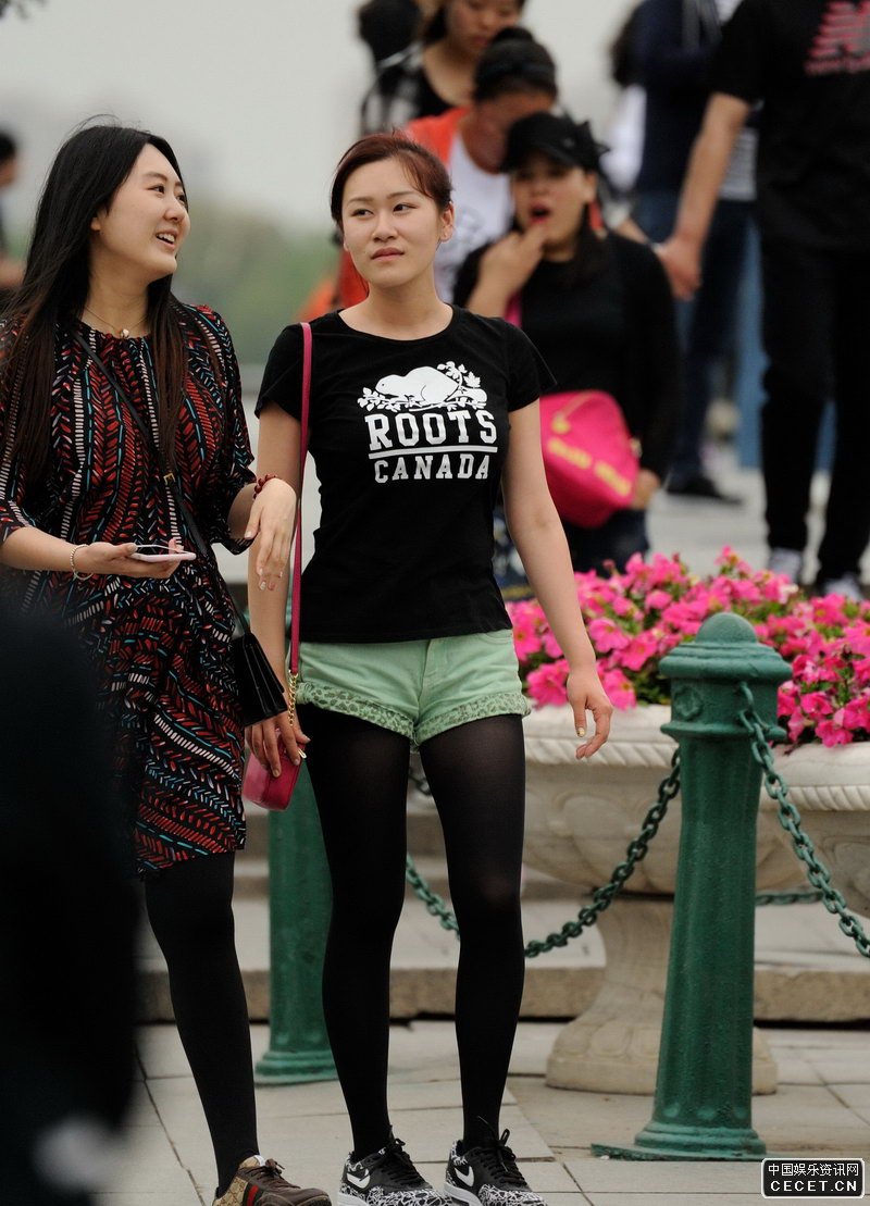 廣場(chǎng)街拍的綠色短褲黑絲襪美女