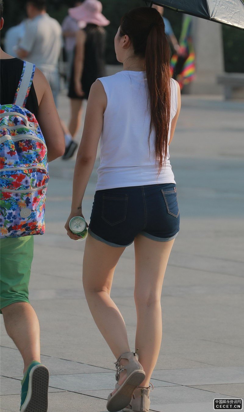 廣場(chǎng)街拍的牛仔短褲粉嫩妹子