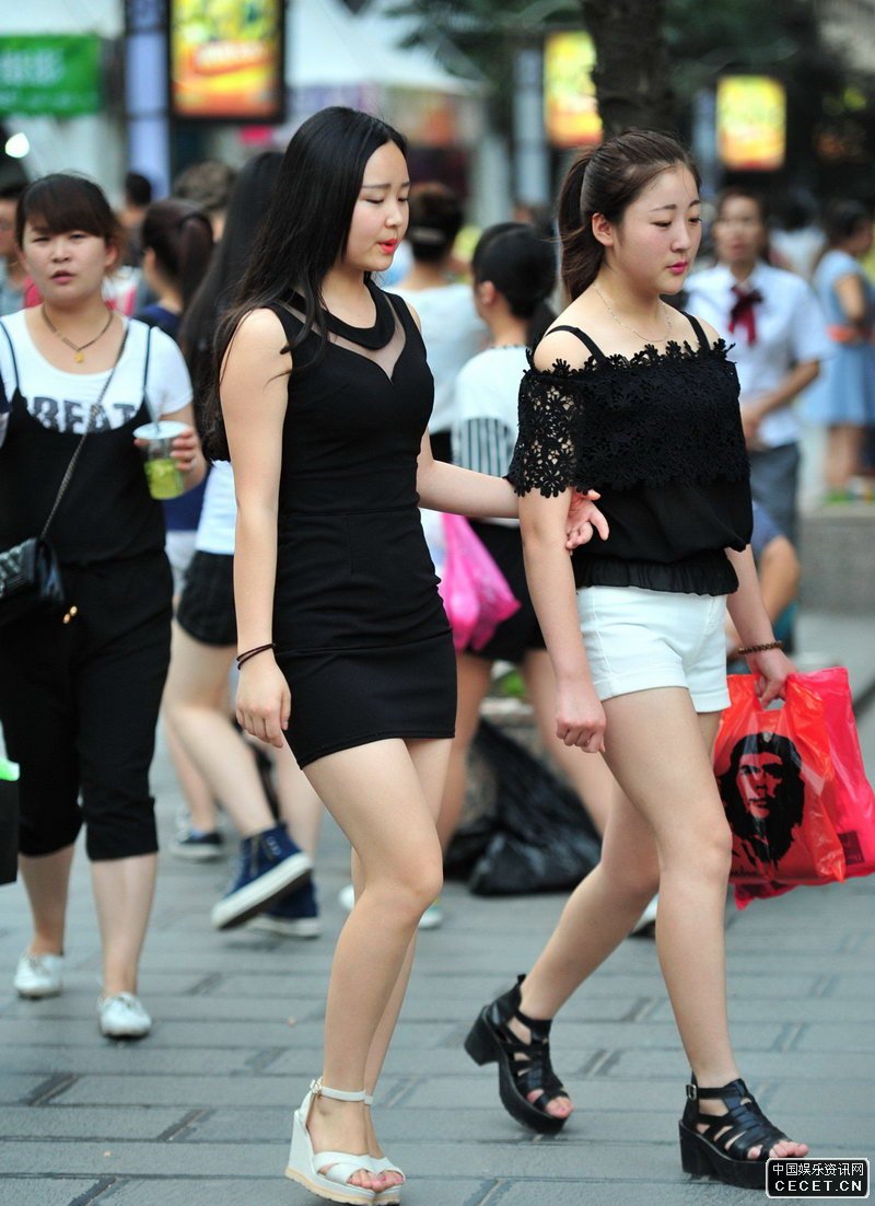 商業(yè)街區抓拍的兩個(gè)美腿妹子