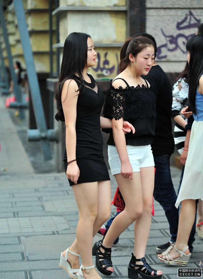 商業(yè)街區抓拍的兩個(gè)美腿妹子